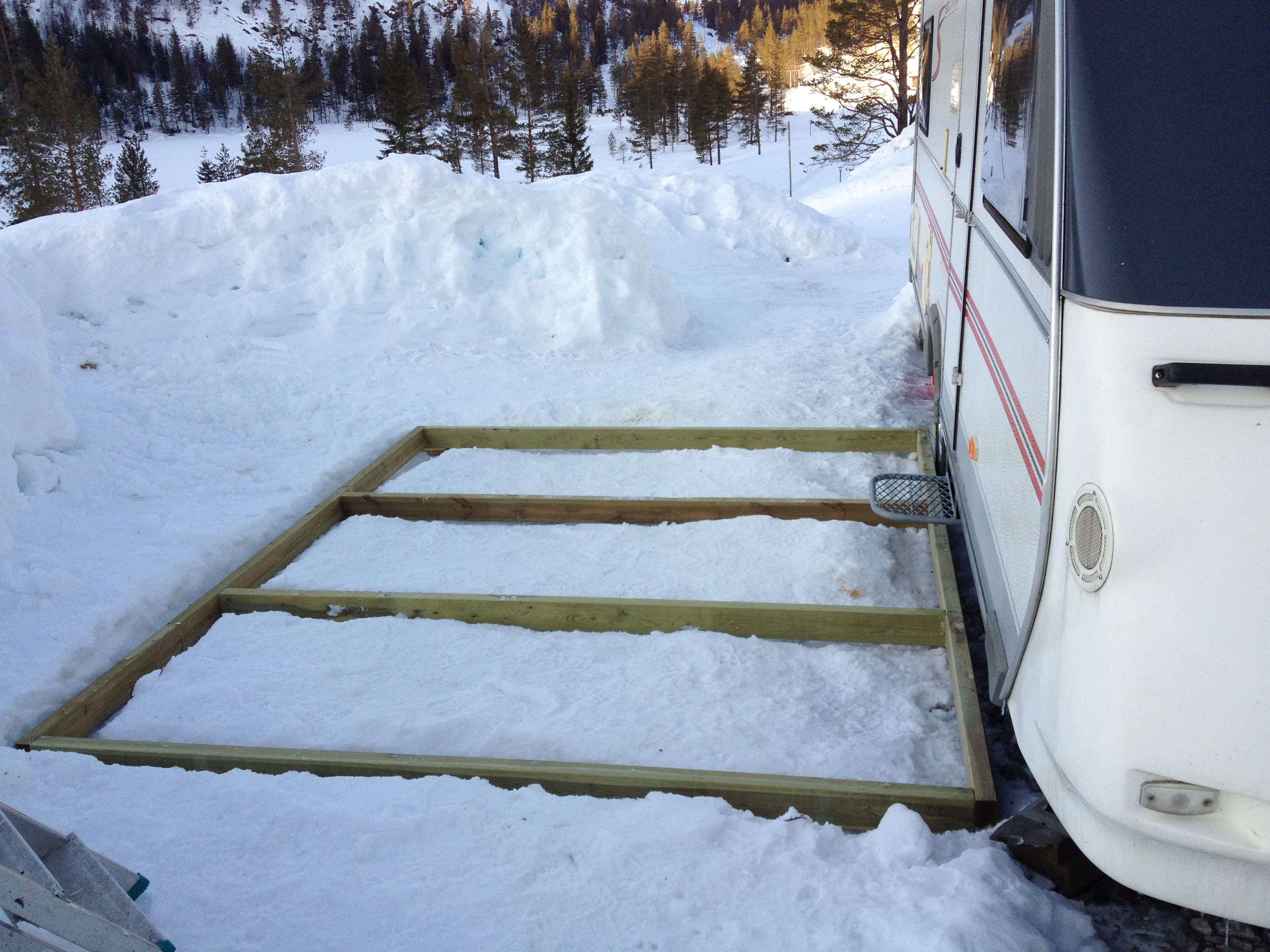 Men samtidig benyttet vi oss av helgen til å snekkre ramme til å holde forteltet nede når vi får nye stenger.