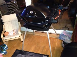 Bingo, klokken 22-23 var det tilbud på ting som griller osv, og der var den, Weber Q220 med stativ og det hele, normal pris 2990,- og var nå satt ned til 1990,- det er det billigste jeg har sett denne til, så jeg bare måtte slå til 🙂